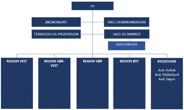 Vår virksomhet er organisert som et regionbasert konsern, Hellvik Gruppen. Gruppen har fire regioner: Øst, Sør, Sør-Vest og Vest. XL-Bygg Hellvik med tre avdelinger, samt støtteselskapene Hellvik Hus Teknologi og Produksjon og Hellvik Hus kjedetjenester.