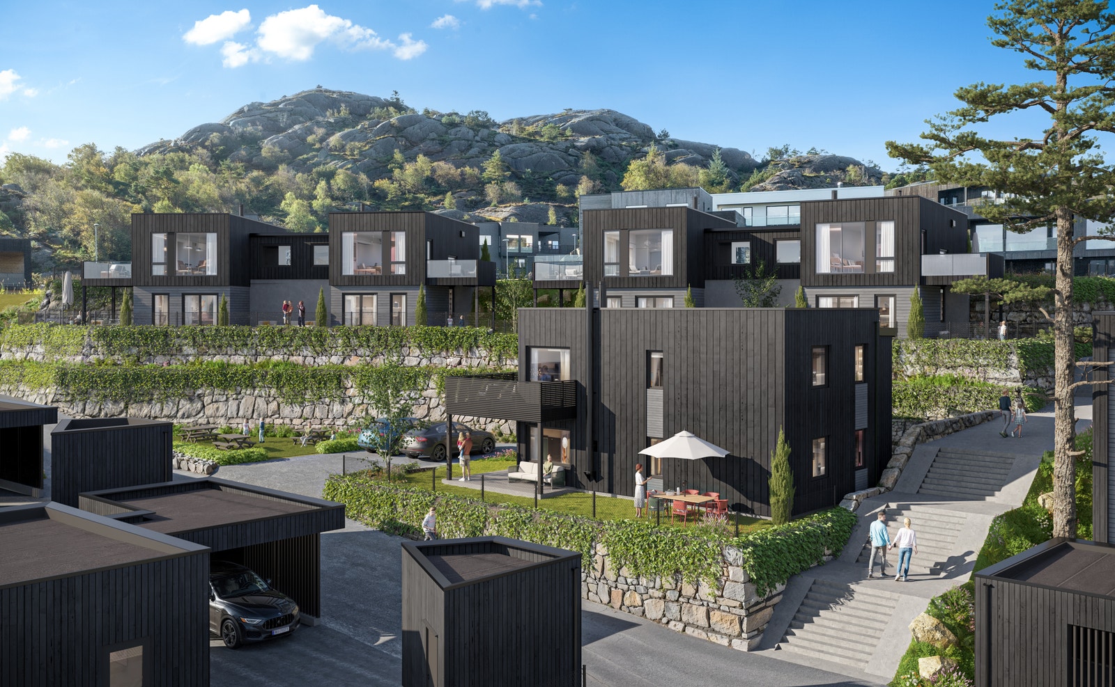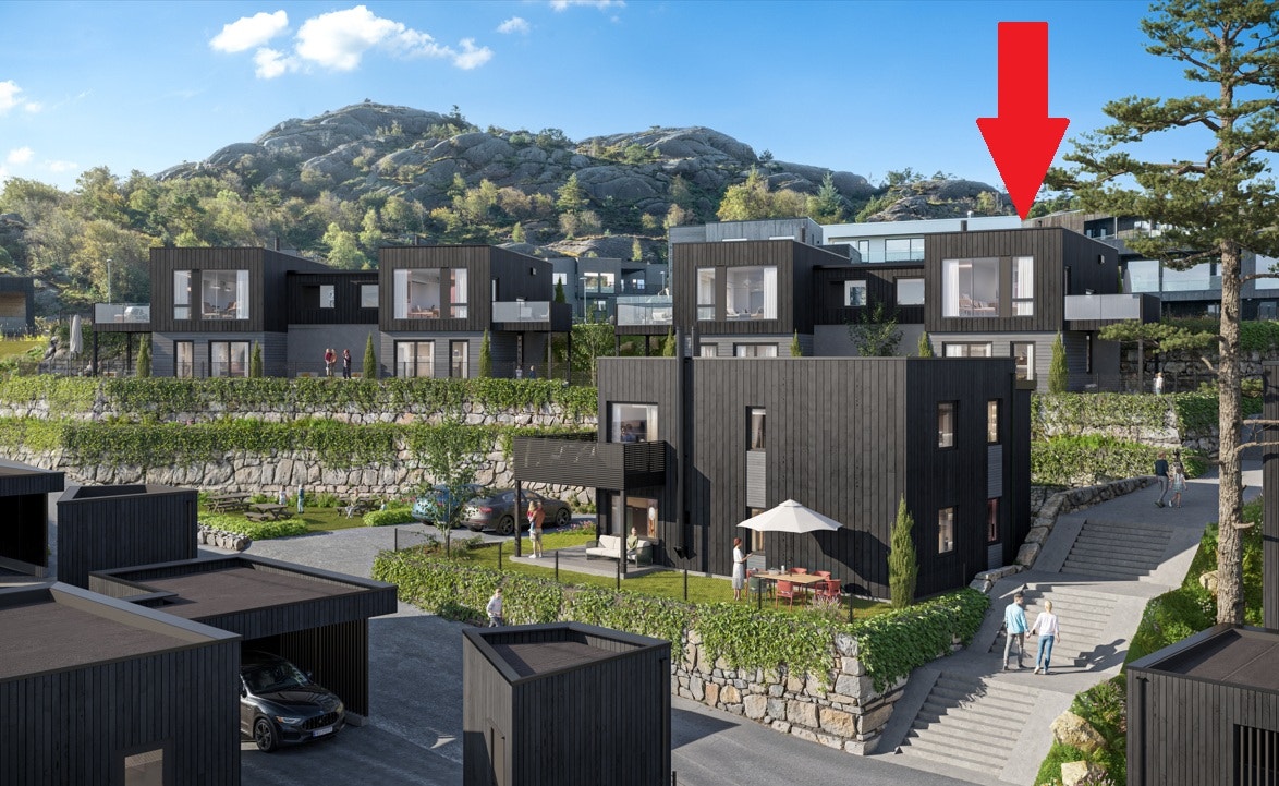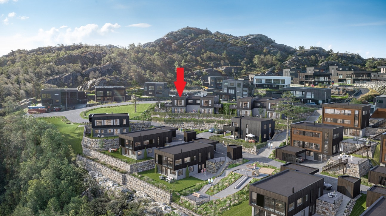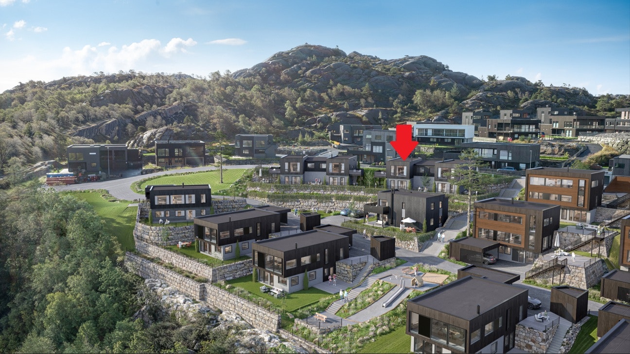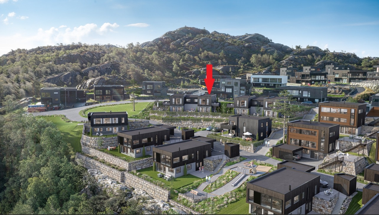 Beskrivelse Rekken består av fire moderne eneboliger, plassert et nivå over tomannsboligen med trygg adkomst fra øvre vei. Her ligger...