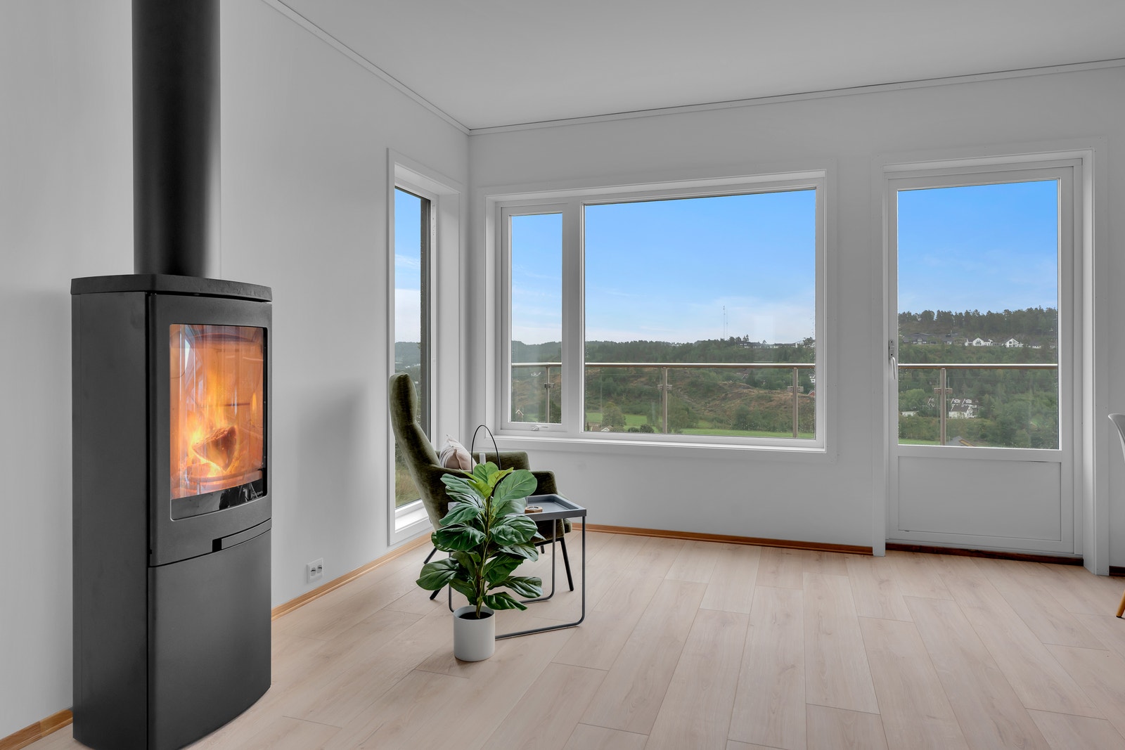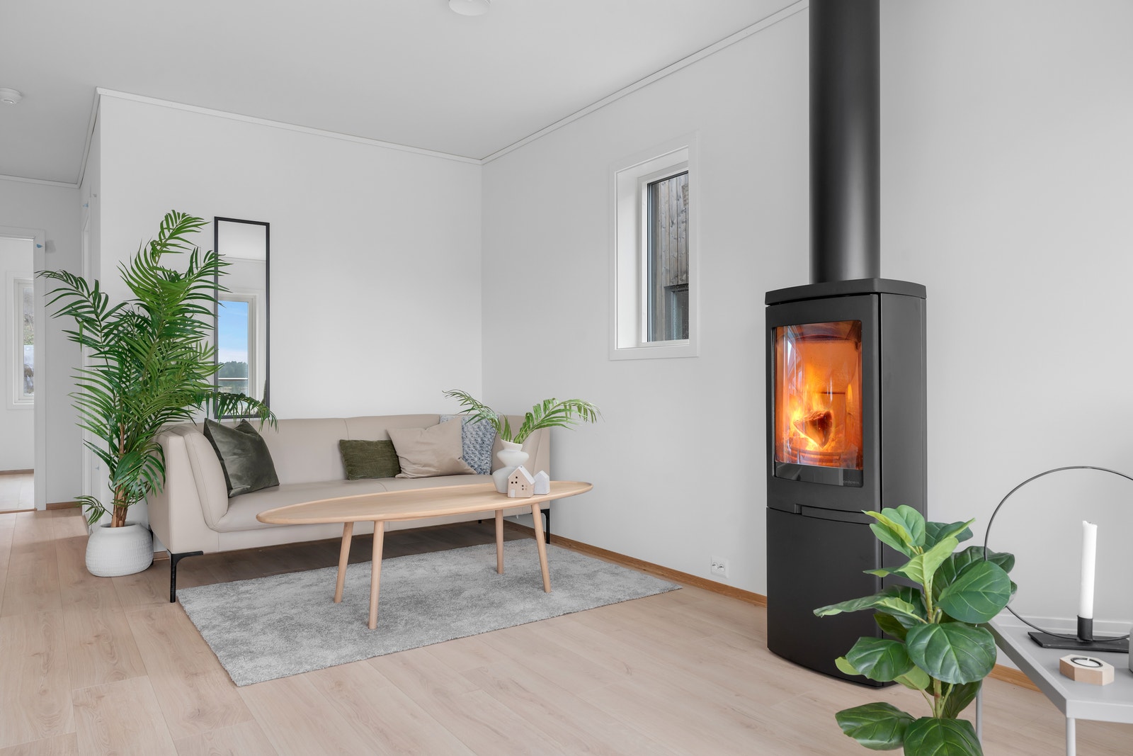 Det blir varmekabler i gang og bad. Alle leilighetene i 1 etg. har i tillegg varmekabel i stue og kjøkken. Alle leilighetene har panelovner i alle rom. Vi leverer pipe komplett med ovn.