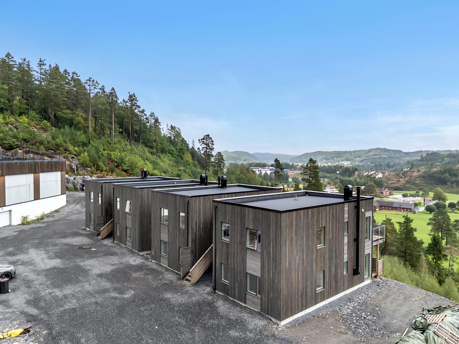 Prosjektet består av totalt 20 leiligheter fordelt på 5 firemannsboliger. I første salgstrinn som er ute nå er det 12 av leilighetene som er for salg fordelt på 3 av firemannsboligene.