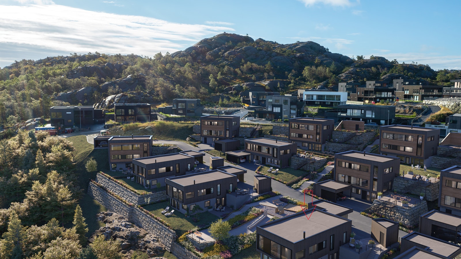Boligen er tegnet av Studio Aase og har et spennende og moderne uttrykk. Her er flott utsikt og gode kvaliteter på tomten. Boligen får godt utemiljø med mulighet for terrasser, solkroker, sportsbod og carport