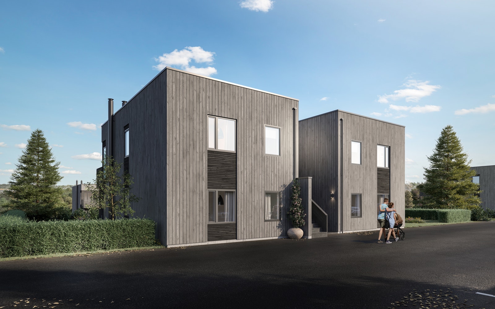 Hellvik Hus Sør AS skal bygge disse 4-mannsboligene på noen solrike, sør/vest vendte tomter, og mulighet for utsikt mot Mandal sentrum.
