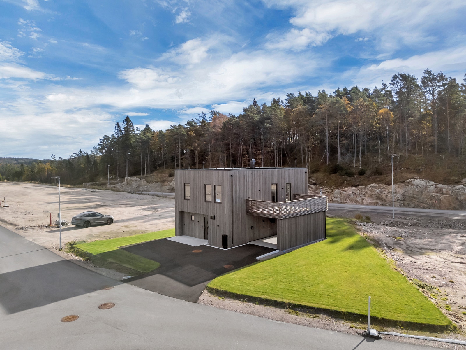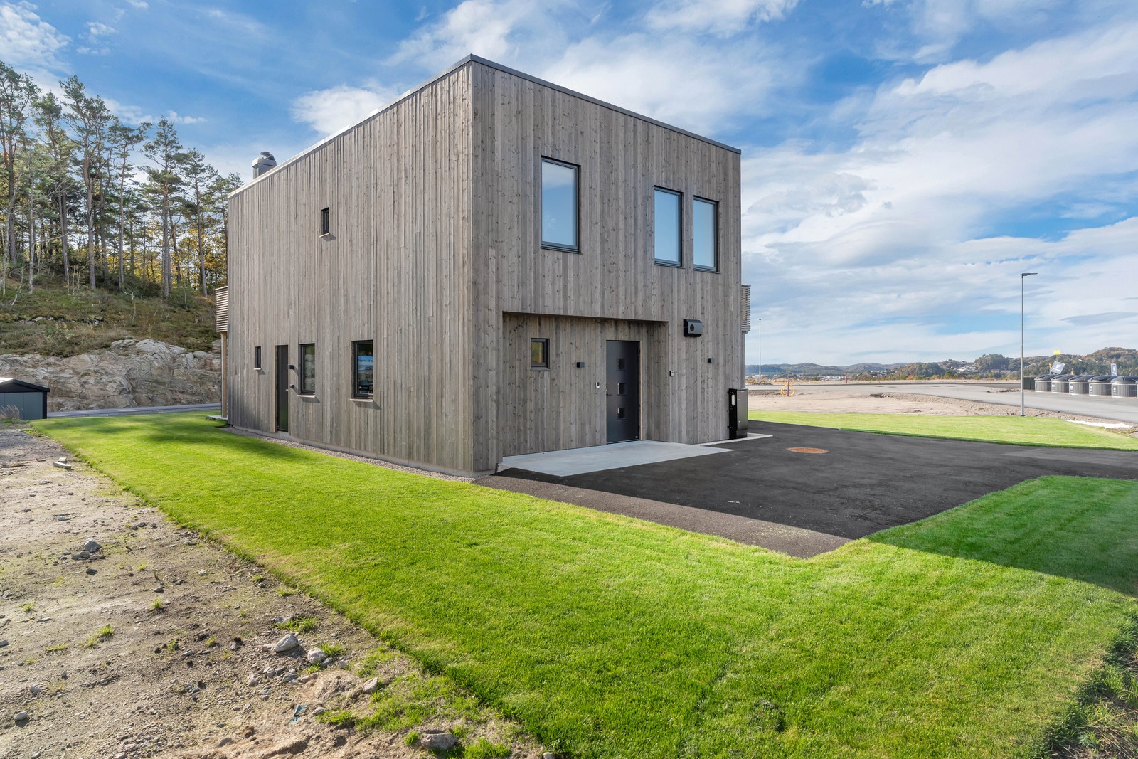 Uteområdet er opparbeidet med asfaltert gårdsplass og ferdig plen på resten av tomten. Beplantning har vi ikke tatt med, da du som kjøper vet best hva du liker.