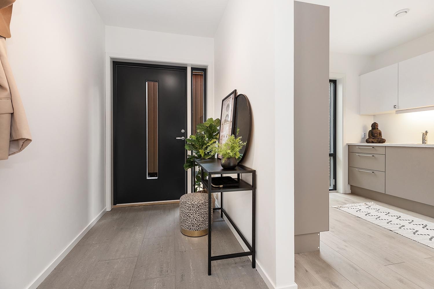Rekkehuset har flislagt entre med varmekabler i gulv.