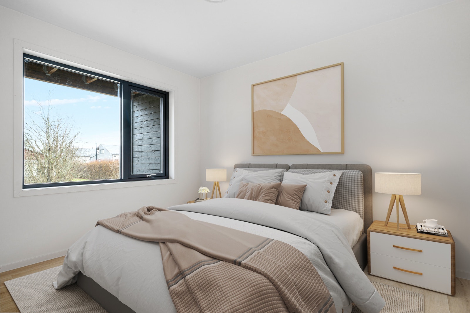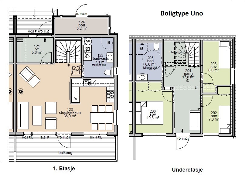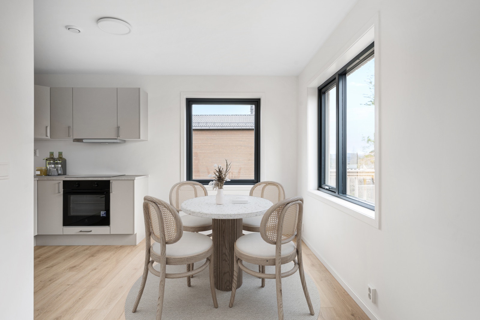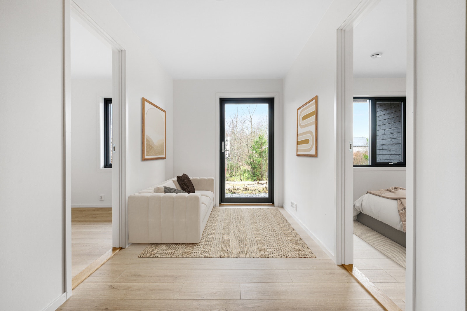 Uno er en flott familiebolig med tre gode soverom, åpen stue- og kjøkkenløsning samt to bad. Begge badene er flislagte og leveres med dusj, servant og vegghengt toalett. Det er plass til vaskemaskin og tørketrommel, samt mulighet for badekar i hovedbad nede. Fra stuen er det utgang til en solrik balkong. Fra gang i underetasjen er det utgang til terreng. Gode parkeringsmuligheter på egen tomt.