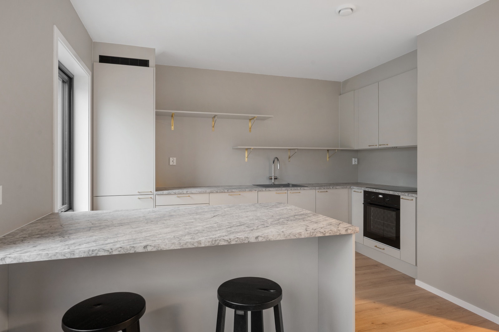 Denne leiligheten har oppgradert kjøkken med gjennomført og moderne standard. Det oppgraderte kjøkkenet gir et mer eksklusivt uttrykk med smarte løsninger og økt komfort i hverdagen. Kjøkkenet er et viktig element for boligens verdi over tid. Leiligheten har garderobeløsning i gang, samt mediebenk i stue levert av Sigdal.
