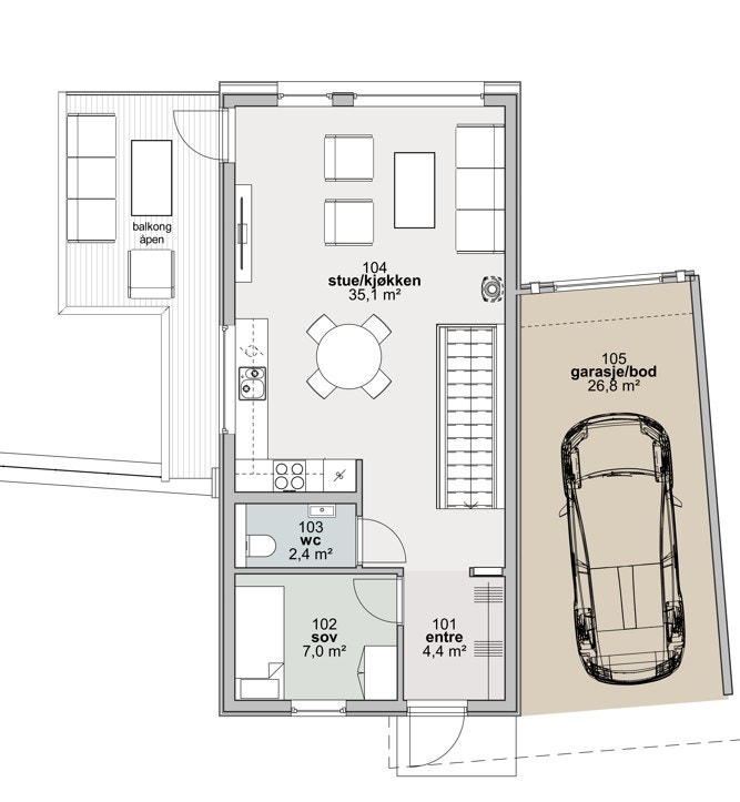 - Carport/bod (ÅOA): 26,8 m²