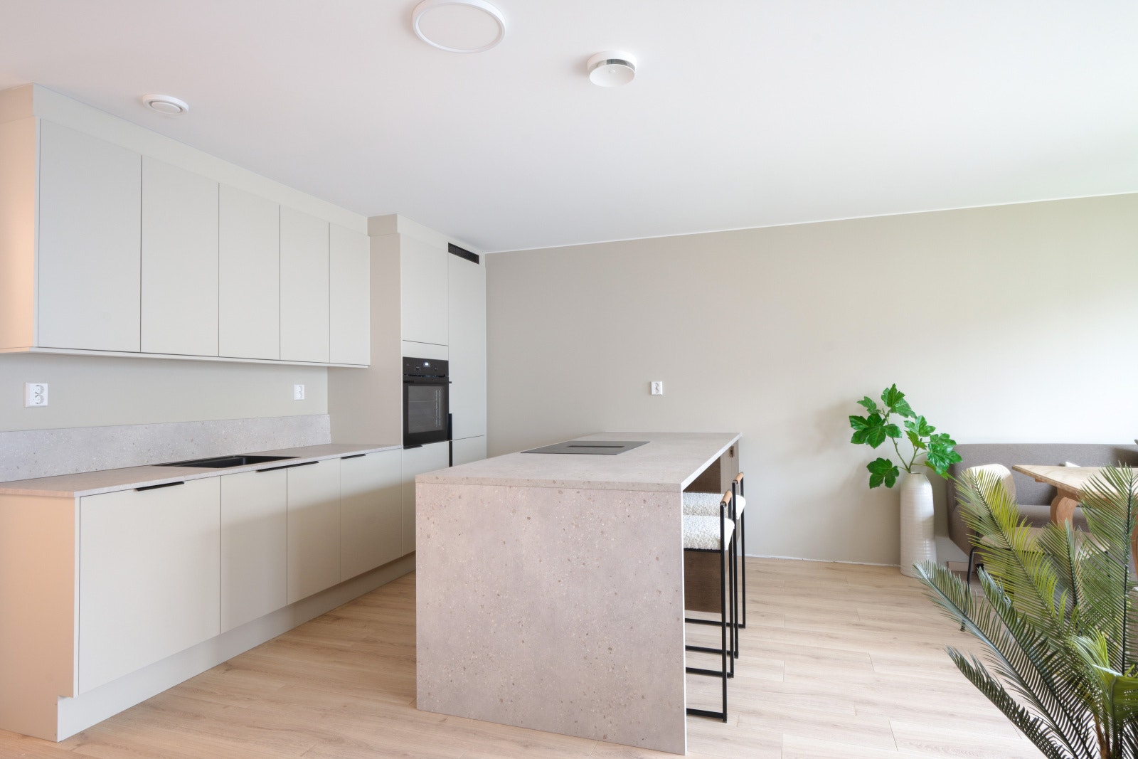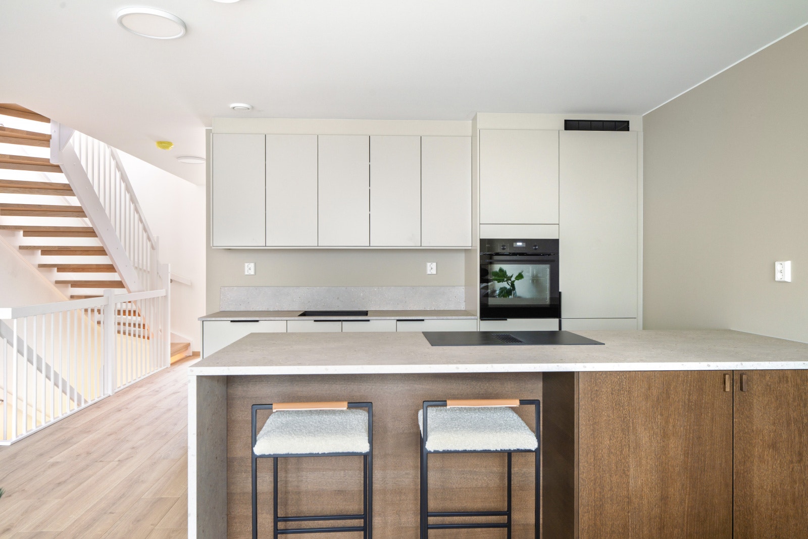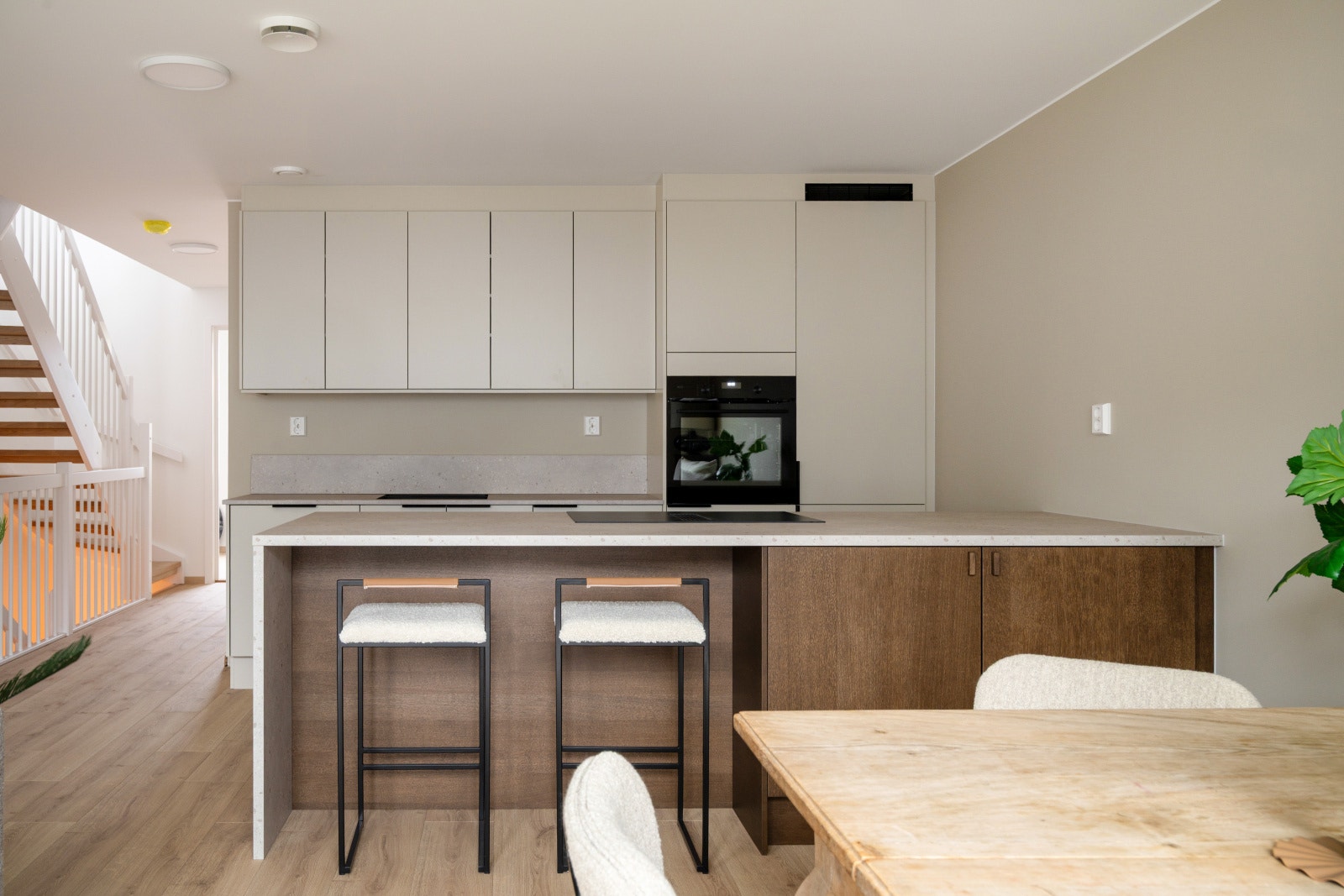 Rekkehusene leveres med et stilrent kjøkken fra serien Uno. Uno er en «kameleon-modell» som tilpasser seg omgivelsene og blir akkurat det kjøkkenet du ønsker. Det er mulig å velge kostnadsfritt mellom 15 forskjellige frontfarger. Rekkehusene har kjøkkenøy med platetopp. Det gjøres oppmerksom på at kjøkkenet som er vist på bilder er oppgradert og er ikke standardleveranse.