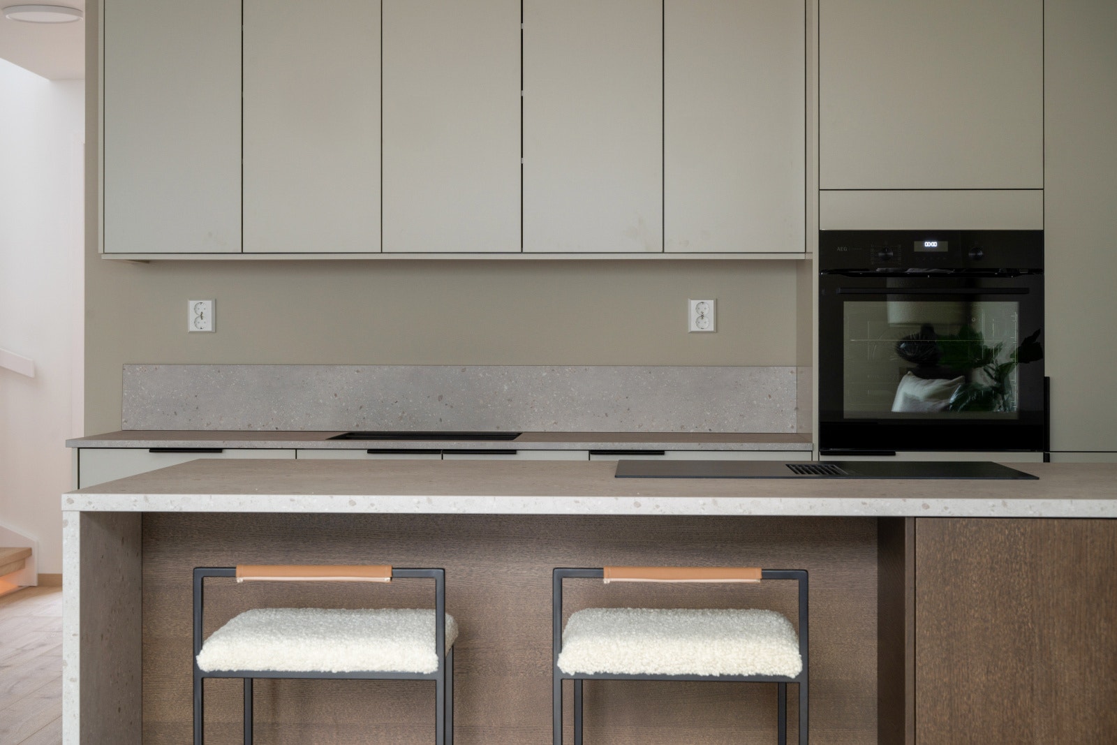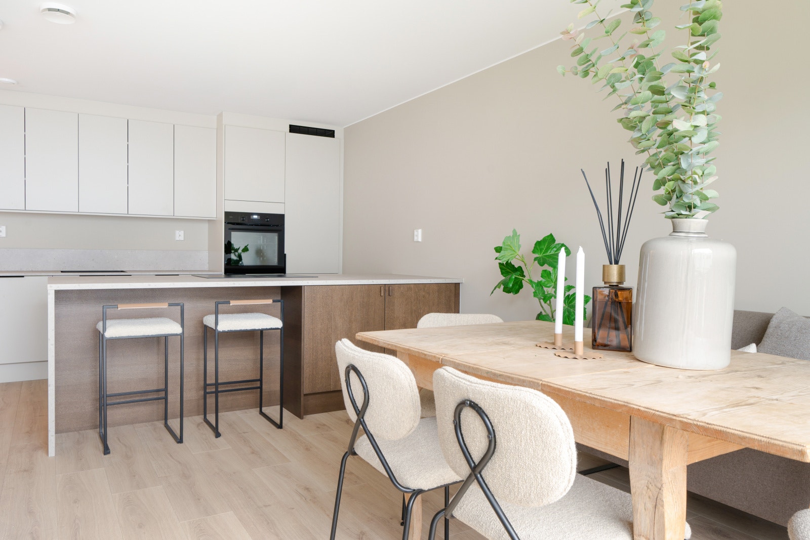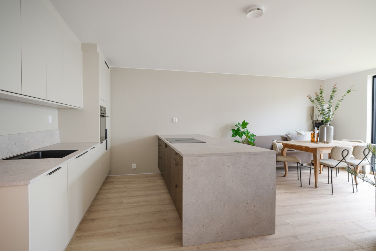 Rekkehusene leveres med et stilrent kjøkken fra serien Uno. Uno er en «kameleon-modell» som tilpasser seg omgivelsene og blir akkurat det kjøkkenet du ønsker. Det er mulig å velge kostnadsfritt mellom 15 forskjellige frontfarger. Rekkehusene har kjøkkenøy med platetopp. Det gjøres oppmerksom på at kjøkkenet som er vist på bilder er oppgradert og er ikke standardleveranse.