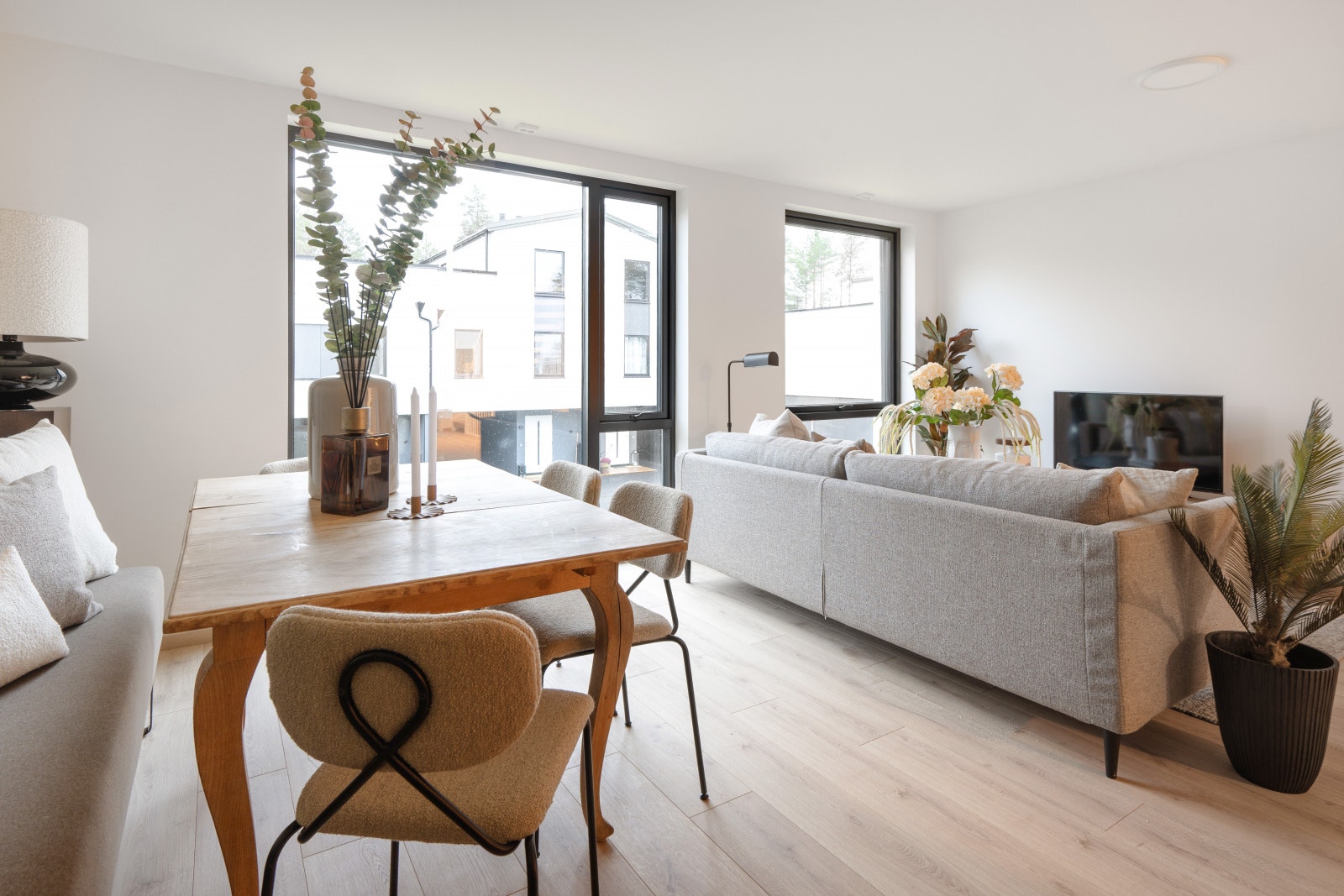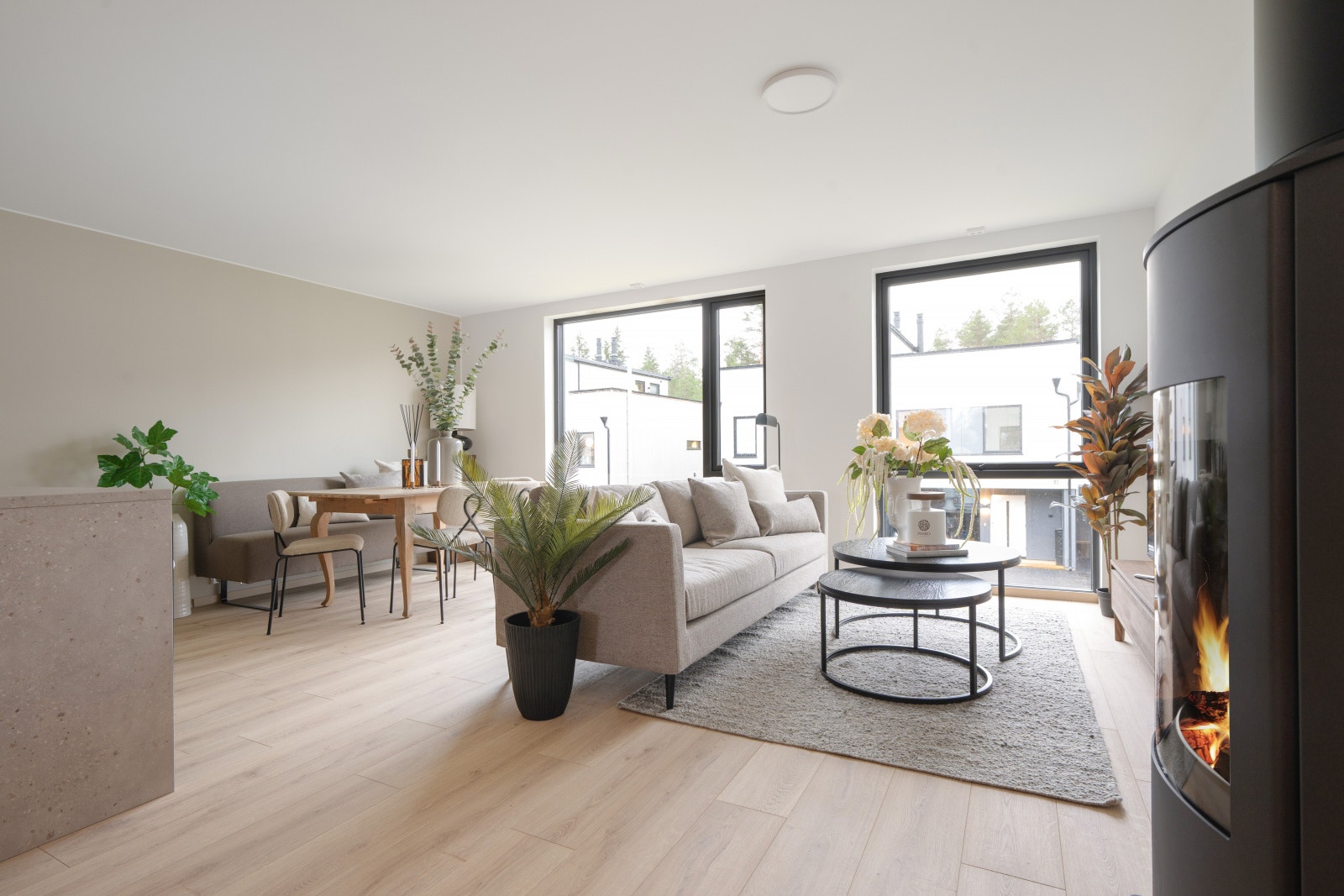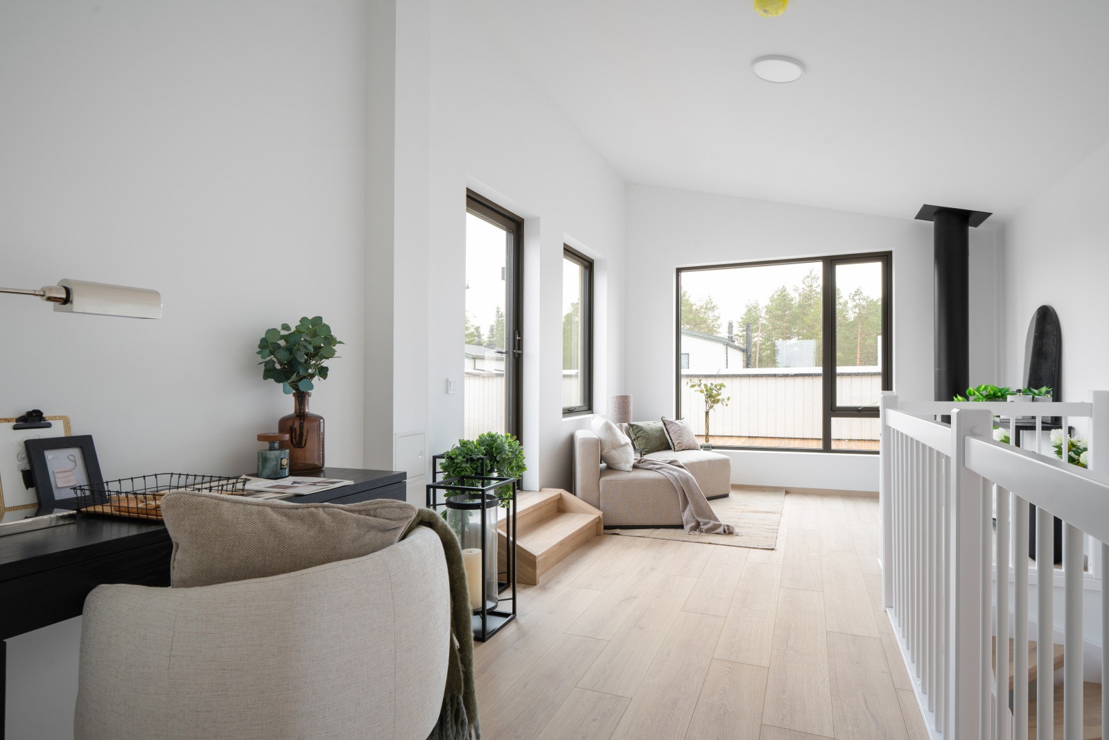 Trappen til andre etasje fører opp til et stort sosialt rom med kjøkken og stue. En kjøkkenøy gjør det mulig å lage mat og samtidig snakke med gjestene. Andre etasje består også av to soverom og et bad. Bolig D har en glass-skyvedør i andre etasje, som kan åpnes helt opp som en fransk balkong for å nyte både frisk luft og et nydelig måltid. Bolig C har tre etasjer med loftstue, et ekstra soverom og takterrasse.