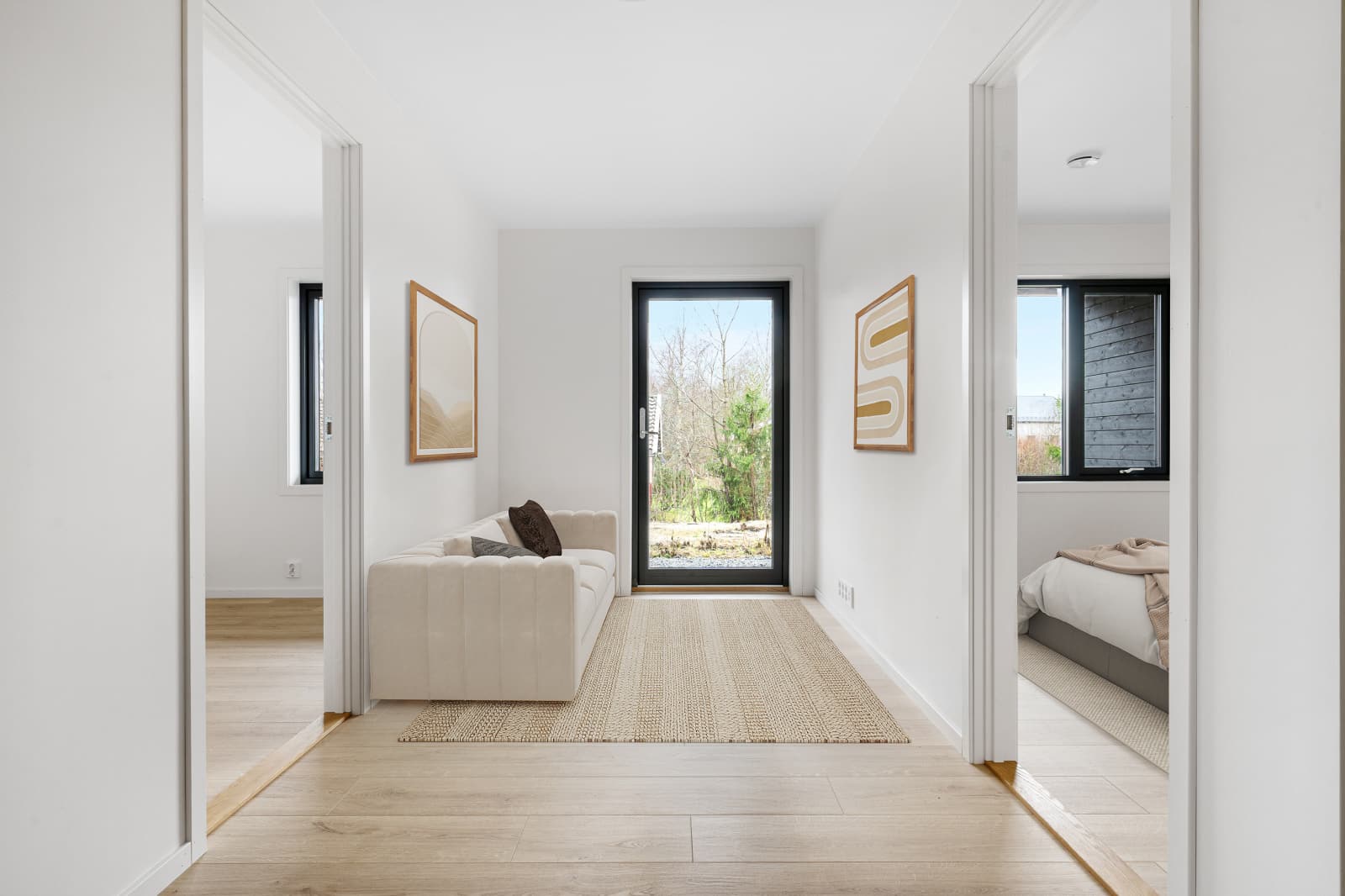 BoligenDenne moderne eneboligen over to plan byr på en gjennomtenkt planløsning med hele fire romslige soverom, to bad, separat WC…